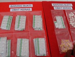 “Satnarkoba Polres Tasikmalaya amankan tiga orang pelaku penyalahgunaan persediaan farmasi berupa obat jenis Tramadol dan Hexymer. Adapun tersangka ada tiga orang pertama UN (23), kedua RA (18), AA (26).”Ujar Kasie Humas Polres Tasikmalaya, Bripka Triana Anggasari, SH pada rilis di Mapolres Tasikmalaya Jumat.