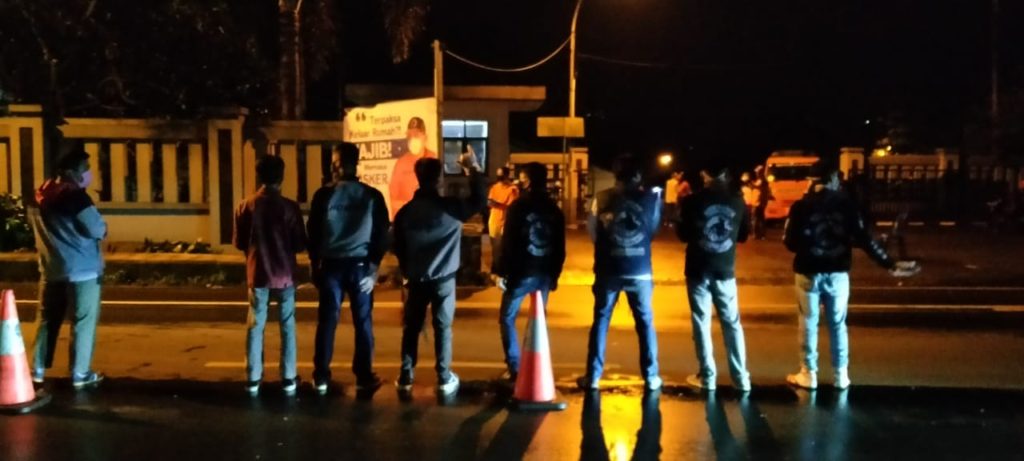 Bikers Subuhan Tasik Utara Peduli Covid-19, dengan berbagi masker kepada Satgas Perbatasan Kota/Kabupaten Tasik dan Para Penguna jalan raya yang tidak memakai masker, pada Sabtu Malam di Jln. Raya Indihiang, (18/4/2020)
