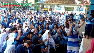Kota Tasikmalaya- Siswa-siswi dan para guru SMA Negeri 7 Kota Tasikmalaya, Jawa Barat menyambut hangat penyanyi atau aktris Selvi Kitty di Sekolah, Kamis (18/8/2022).