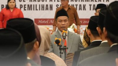Asisten Pemerintahan dan Kesejahteraan Rakyat Kabupaten Tasikmalaya, Nana Heryana mewakili Bupati Tasikmalaya Ade Sugianto hadir pada Pelantikan dan Pengambilan Sumpah Anggota Panitia Pengawas Pemilihan Umum Kecamatan Se-Kabupaten Tasikmalaya, di Hotel Alhambra Singaparna, Jum’at (24/5/2024).