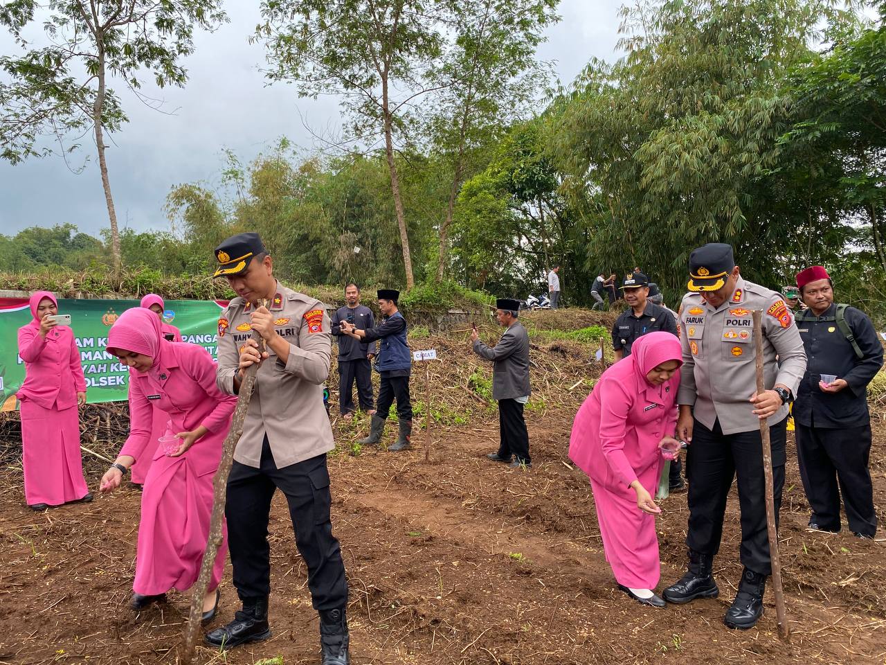Kapolres Tasikmalaya Kota, AKBP Moh. Faruk Rozi beserta Ketua Bhayangkari melakukan penanaman jagung pada Program Ketahanan Pangan di Wilayah Kecamatan Sukahening, Kabupaten Tasikmalaya.