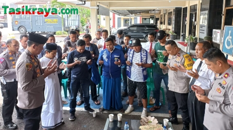 AKBP Suhardi Hery Heryanto Kapolres Tasikmalaya menggelar doa bersama dan istighosah bersama Aliansi Suporter Persib Tasikmalaya bertempat di Mako Polres Tasikmalaya.