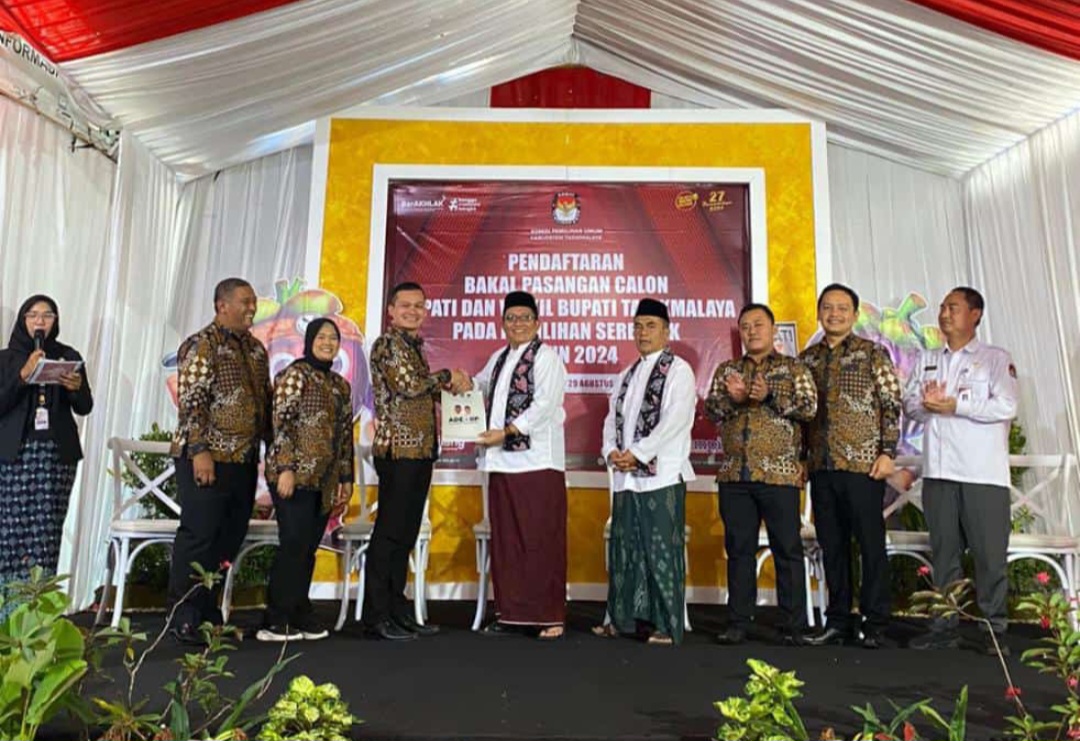 Kabupaten Tasikmalaya, tasikraya.com-Pasangan Ade-Iip akhirnya mendaftarkan diri ke KPU Kabupaten Tasikmalaya di hari ketiga, Kamis Sore, 29 Agustus 2024.