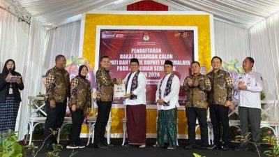 Kabupaten Tasikmalaya, tasikraya.com-Pasangan Ade-Iip akhirnya mendaftarkan diri ke KPU Kabupaten Tasikmalaya di hari ketiga, Kamis Sore, 29 Agustus 2024.