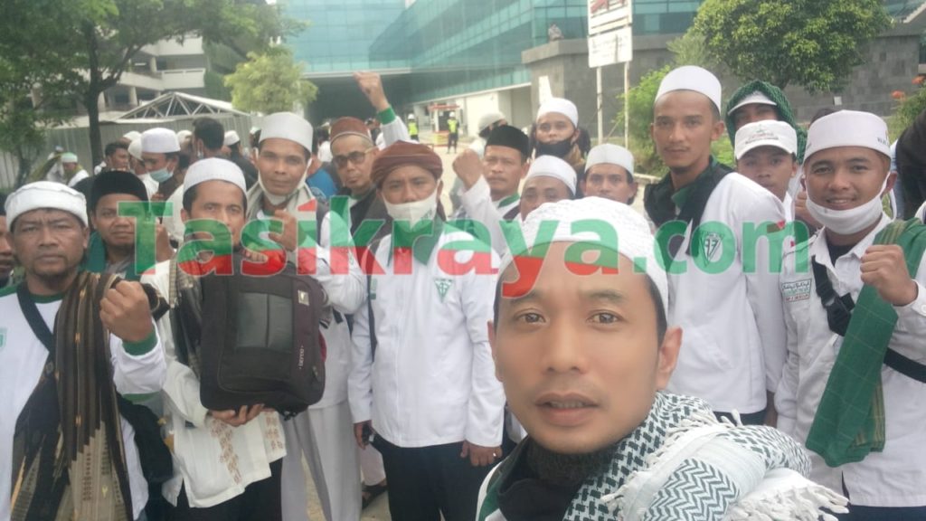 Keluarga besar Front Pembela Islam (FPI) DPC Cisayong Kabupaten Tasikmalaya mengawal kepulangan Imam Besar Front Pembela Islam yaitu Habieb Rizieq Shihab (HBS) di Bandara Internasional Soekarno Hatta, Selasa, (10/11/2020) bertepatan dengan Hari Pahlawan.