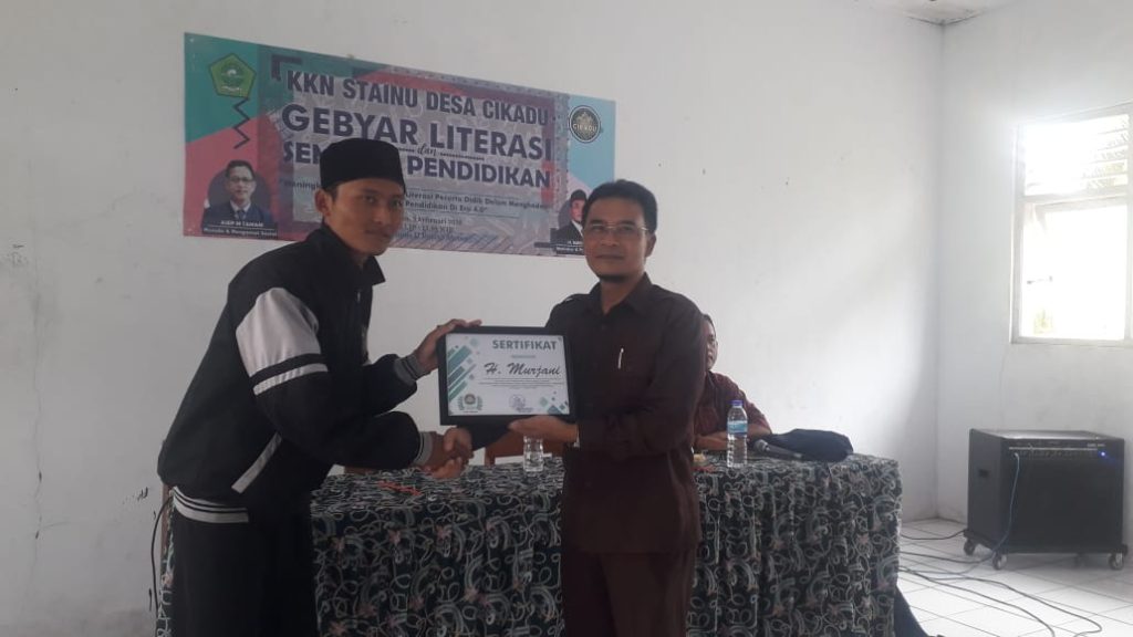 Kabupaten Tasikmalaya – Kuliah Kerja Nyata (KKN) Stainu Kota Tasikmalaya melakukan Kegiatan Gebyar Literasi Seminar Pendidikan Aula SMK Darul Abroor, Desa Cikadu Kabupaten Tasikmalaya, Rabu (19/02/2020)
