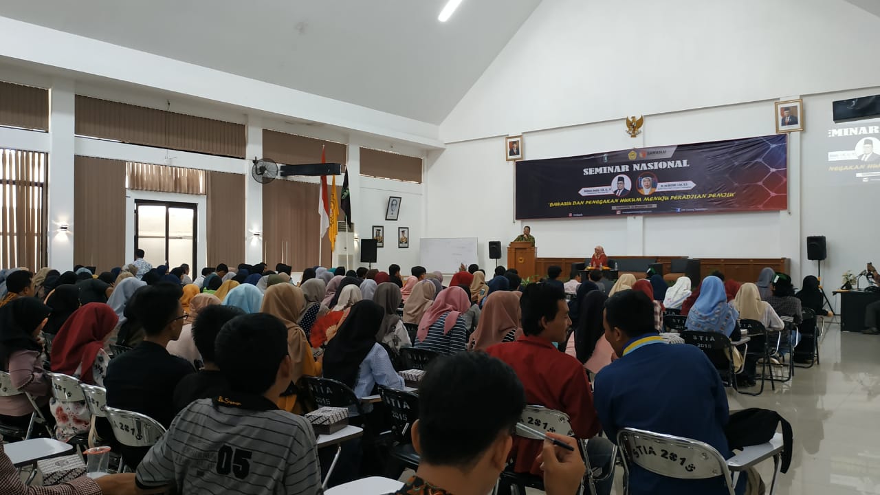 Tasikmalaya – Himpunan Mahasiswa Islam Cabang Tasikmalaya menyelenggarakan Seminar Nasional dengan tema “Bawaslu dan Penegakan Hukum Menuju Peradilan Pemilu” di Aula Kampus STIA Kota Tasikmalaya, Senin (23/12/2019).