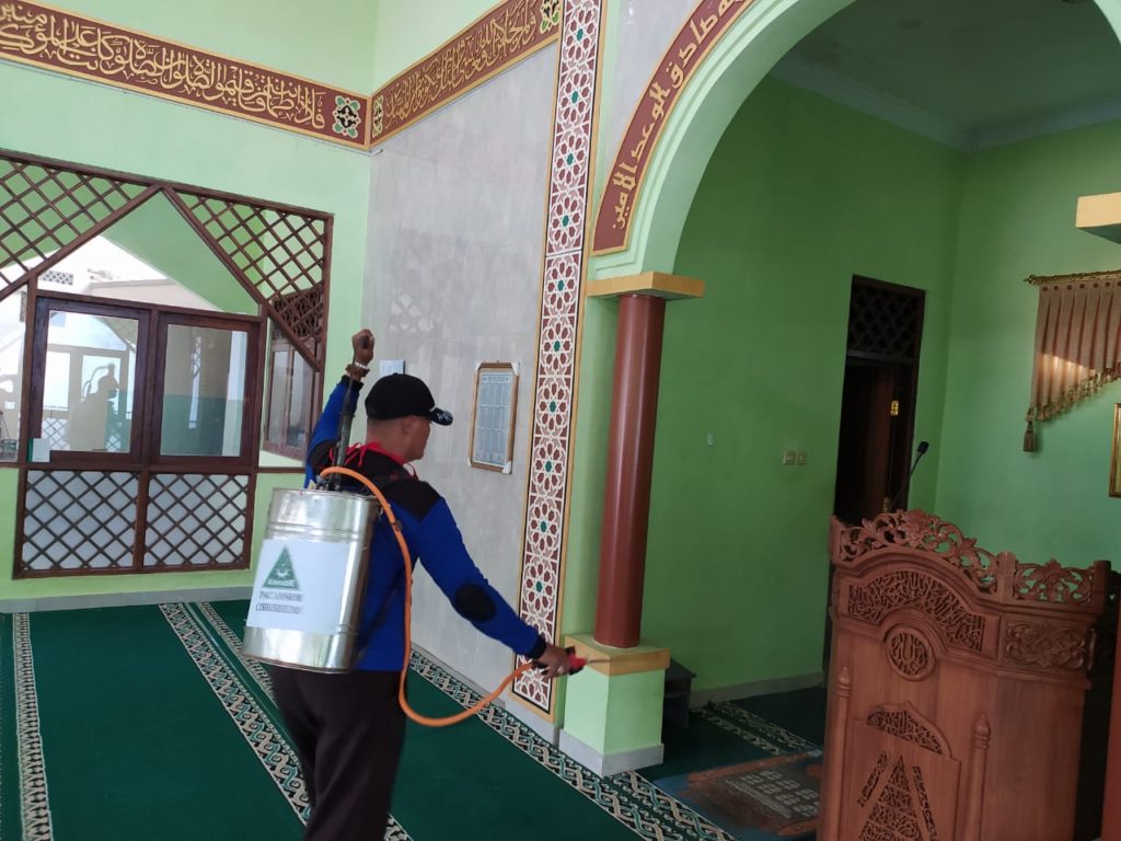 Salah satunya PAC (Pimpinan anak cabang) GP Ansor Cibeureum kota Tasikmalaya yang melakukan sterilisasi dengan menyemprotkan cairan disinfectan ke sejumlah mesjid dan pondok pesantren. Cibeureum, Kamis (26/03/2020).