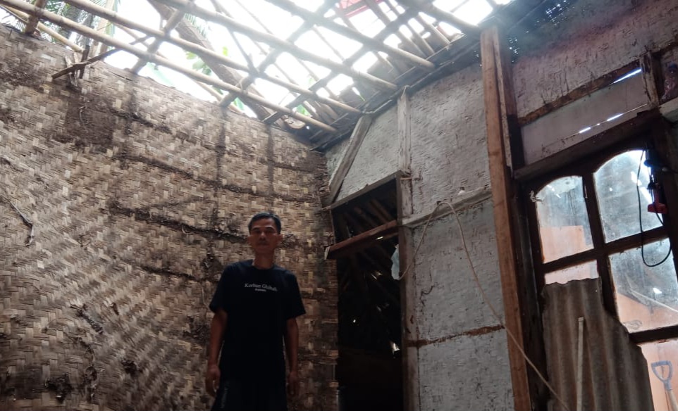 Rumah mantan Ketua Rt02/Rw04, di Kampung Sukaasih, Kelurahan Sumelap, Kecamatan Tamansari, Kota Tasikmalaya Dedi Hidayat (43) ambruk diterjang angin dan hujan sejak 3 bulan lalu.