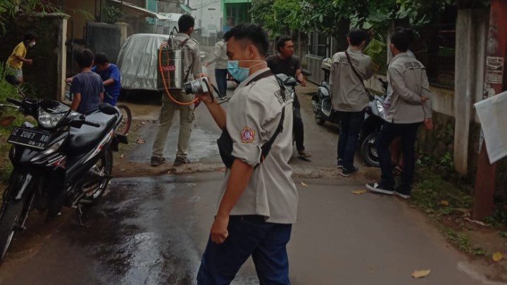 Kota Tasikmalaya- Pengurus Karang Taruna Kecamatan Cibeureum melaksanakan aksi peduli pencegahan covid-19 dengan melaksanakan penyemprotan disinfektan serentak di sembilan kelurahan yang ada di wilayah Kecamatan Cibereum.