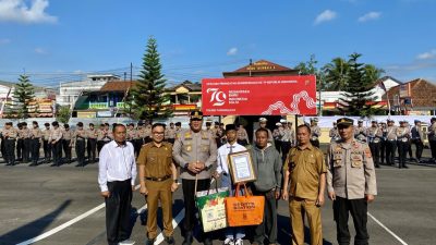 Upacara Kemerdekaan RI ke-79, Polres Tasikmalaya mengundang dan memberikan apresiasi atas ketangkasan keberanian Reza di hari bersejarah, berjalan dengan lancar.