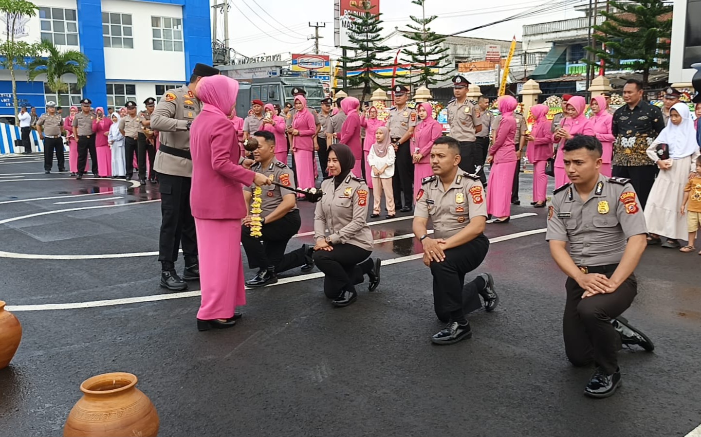 Bagian paling menarik perhatian adalah tradisi unik mandi kembang yang dilakukan oleh Kapolres Tasikmalaya kepada empat anggota perwakilan yang naik pangkat.