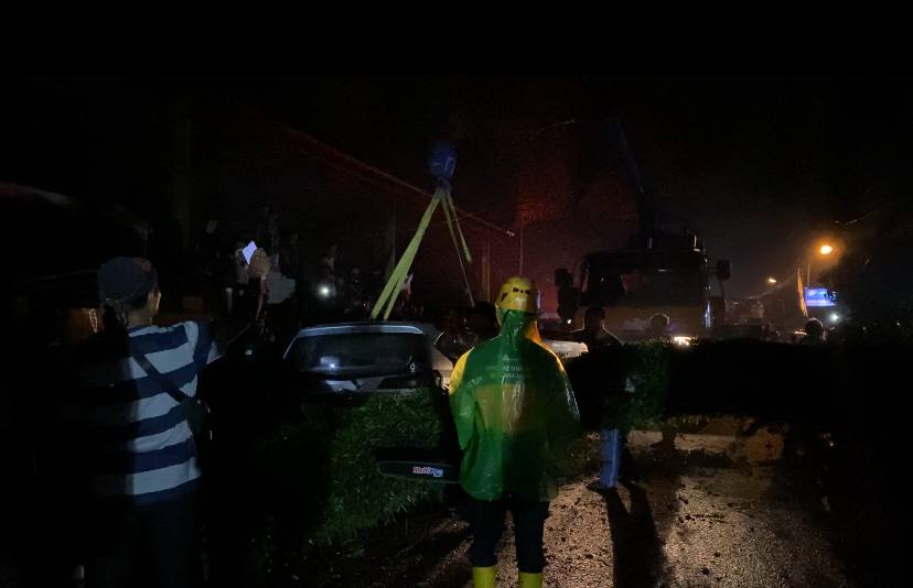 Pohon tumbang itu menimpa satu unit Mobil dari arah Kota Tasikmalaya-Rajapolah sekitar Pukul 21.30 WIB.