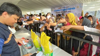 Sontak, ratusan warga terlihat antusias menyerbu stan-stan pangan yang telah disiapkan oleh jajaran Polres Tasikmalaya.