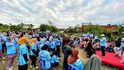 “Terkhusus ibu-ibu diberikan kaos hari ini jangan hilang, nanti kita akan ada acara jalan sehat di Taman Kota dan jumlah hadiahnya total 300 Juta Rupiah.”Sambungnya.