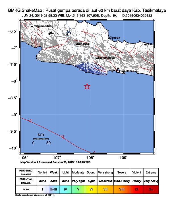 Dilihat berdasarkan informasi dari situs Badan Meteorologi, Klimatologi, dan Geofisika (BMKG), gempa terjadi pada pukul 02.58 dini hari, Senin (24/06/2019)