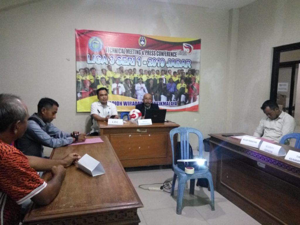 Kota Tasikmalaya – Technical Meeting persiapan pertandingan Persitas Kabupaten Tasikmalaya VS PSGJ Cerbon dalam Liga 3 Super Jalapa Jawa Barat 2019 yang bertempat di Stadion Wira Dadaha Kota Tasikmalaya, Rabu (21/08/2019).