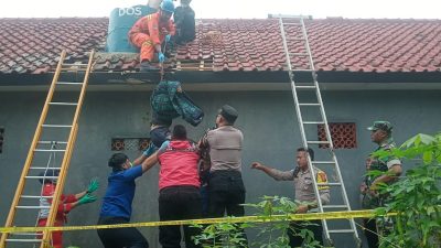 “Korban ditemukan mengenakan kaos hitam dan celana kolor biru dongker. Di sekitar tandon, kami menemukan sepasang sandal jepit ungu dan tangga yang digunakan korban.”Jelas AKP Roni.